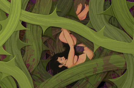 Autorka ilustracji: Katarzyna Zuzanna Aponowicz (19) – studentka Uniwersytetu w Białymstoku na kierunku filologia polska. Interesuje się głównie literaturą, poezją, psychologią i kuchnią wegetariańską. W wolnych chwilach ubiera części swojej osoby, innych ludzi lub tematy ważne społecznie w kolaże.
